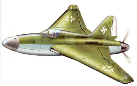 During World War II, Henschel, a German company, contributed to the Luftwaffe by designing aircraft. In 1944, amidst mounting casualties and Allied bombing losses, Henschel proposed a series of "tailless" single-seat fighter jets with rear-mounted multi-blade engines. One of these designs was the P.130, a somewhat radical concept for its time. It featured a cockpit located behind the nose cone, housing four automatic cannons for bomber destruction. The tailless configuration meant it had only one rudder and no horizontal plane. The aircraft was to be powered by two Daimler-Benz DB603 series engines, collectively known as "DB613," delivering a total power output of 3,500 horsepower.