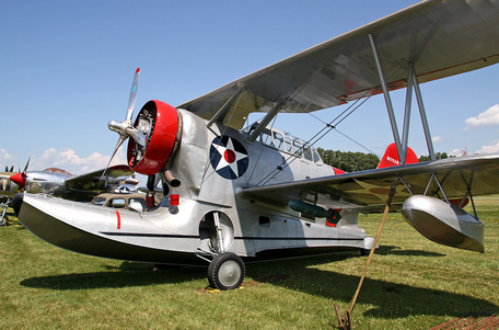 The J2F is an improved version of the earlier JF Duck, the main difference being a longer float and a more powerful engine (900 hp vs 775 hp).