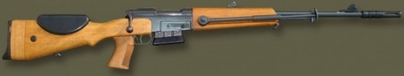 The receiver is designed to accept telescopic sights, the standard French accessory is the padded APX L806. Ammunition is fed from a spring-loaded 10-round detachable magazine that fits under the receiver and in a chute in front of the trigger group. On the receiver end of the front was placed a folding bipod support, which folded up and forward, towards and slightly beyond the length of the front.