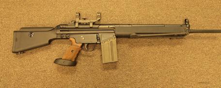To circumvent the US 1989 ban on assault rifles, West Germany's Heckler & Koch took their HK 91, based on the HK 41 semi-automatic rifle, and redesigned/would The product was renamed the Sporting and Sighting Rifle, becoming the "HK 911", then the "HK SR9" (1990). Changes from the original include the loss of a separate pistol grip, flash suppressor and bayonet mount - a more common feature of assault weapons.